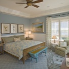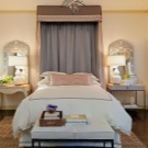 غالبًا ما يتم توفير منطقة قراءة مريحة في غرفة النوم. تم تركيب كرسي استرخاء وطاولة بجانب السرير ومصباح طاولة في هذه المنطقة..