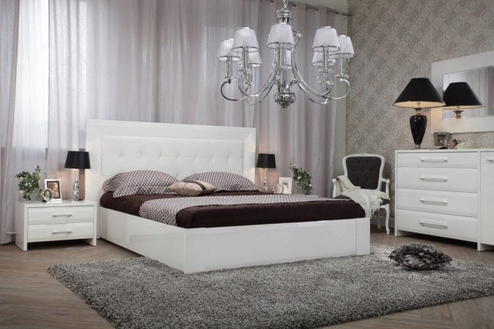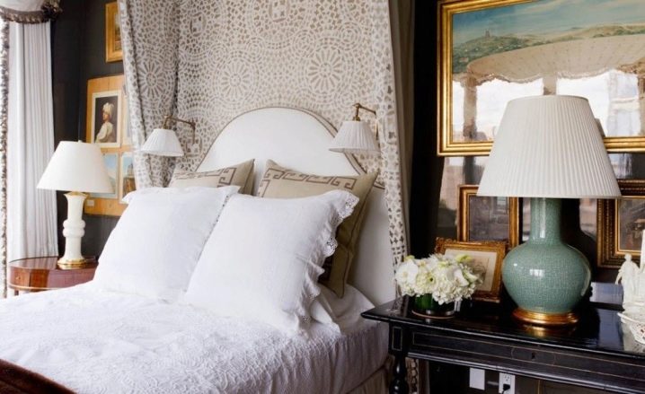 إذا كان السرير مزدوجًا ، يتم تثبيت طاولات السرير على جانبيها. كثير في مثل هذه الحالات لا يكتسب مصباحًا واحدًا ، بل مصباحان.