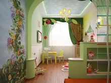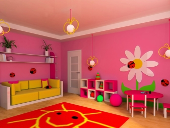 في غرف نوم الفتيات ، من الشائع استخدام النماذج الطويلة المعلقة المكونة من أشياء مختلفة. في هذه الحالة ، تتكون الثريا من زجاج جميل متعدد الألوان ، معلق بترتيب معين. على الرغم من أن الثريا طويلة بما يكفي ، إلا أنها بعيدة عن متناول الأطفال في سن ما قبل المدرسة.