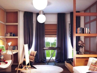 ليس من الضروري استخدام الثريا فقط. سيكون الحل المثير للاهتمام والعملي هو استخدام الإضاءة الموضعية. بالإضافة إلى ذلك ، سيساعد ذلك في تقسيم الغرفة إلى مناطق: العمل والنوم واللعب.