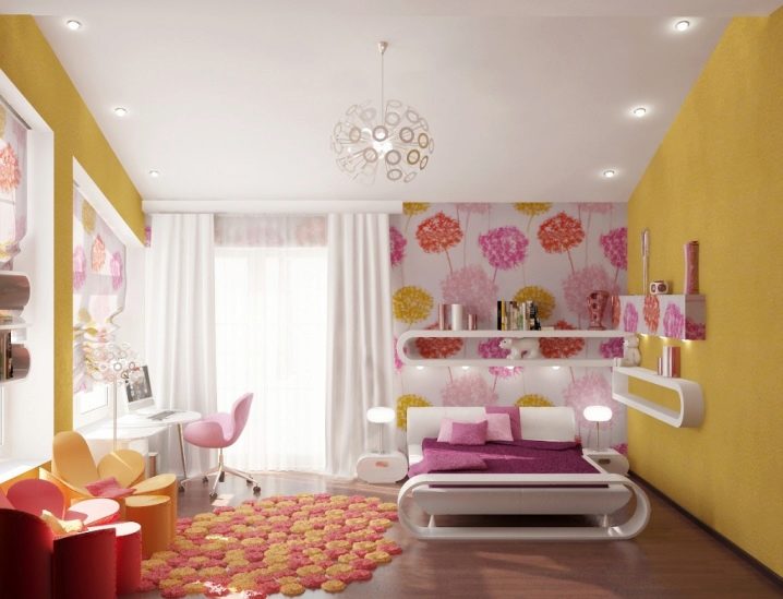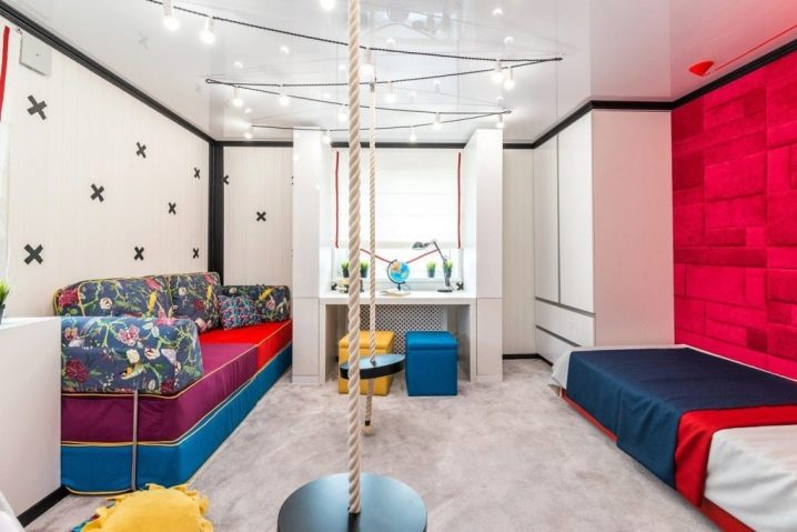 يعتبر الحديث عن الأناقة أكثر ملاءمة بالنسبة لغرفة المراهقين ، لأنه من الأصح بالنسبة لغرفة نوم الأطفال الاهتمام بالسلامة والسطوع والامتثال المطلق لرغبات الطفل. في مرحلة المراهقة ، يحاول الأطفال التعبير عن أنفسهم ، واختيار أسلوب يعكس بالكامل عالمهم الداخلي.