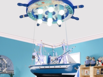 هناك العديد من العوامل التي تؤثر على مظهر الثريا. على وجه الخصوص ، واحد منهم هو الملء المواضيعي للغرفة. إذا كان طفلك يريد تأثيث غرفة بأسلوب القرصان ، فلا يستحق شراء ثريا بظل الأزهار الملتوية. سيكون من المنطقي أكثر اختيار نموذج على شكل لفيفة أو سفينة قرصنة أو جمجمة كرتونية بضمادة فوق عين واحدة..