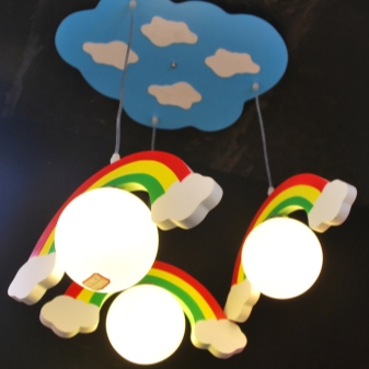 بالإضافة إلى سلامة الثريا نفسها ، يجب أن يكون الضوء أيضًا آمنًا. الاختيار المفضل للإضاءة الناعمة ولكن المنتشرة وغير الضارة لعيون الطفل. يُنصح بتجهيز المصباح بمخفت الإضاءة بحيث يمكن ضبط مستوى الإضاءة.
