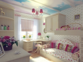 في بعض الأحيان يتم الجمع بين ثريا السقف ومصابيح صغيرة على طاولات السرير أو الشمعدانات.