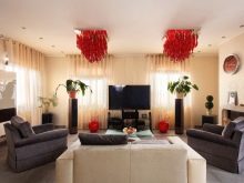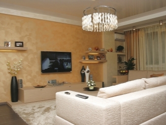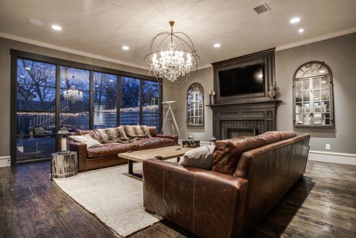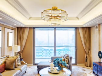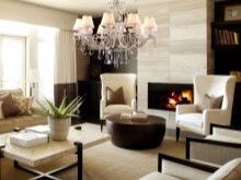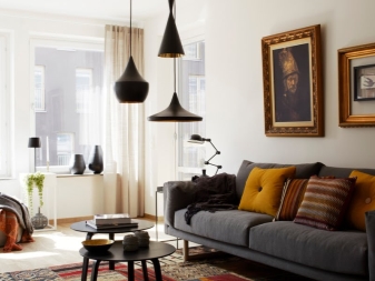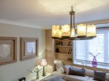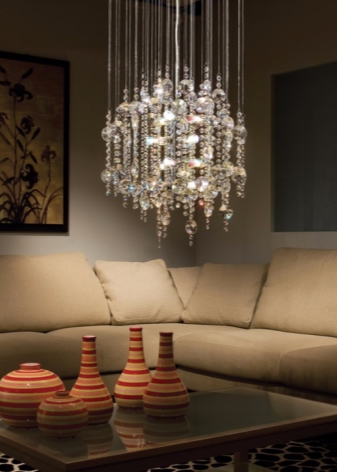 بشكل عام ، من المعتاد أن تختار غرفة المعيشة نوعين فقط من الثريات: المعلقة والثريات العلوية. اعتمادًا على مساحة الغرفة ، يمكن استكمالها بإضاءة موضعية أو تعليقها ليس واحدة تلو الأخرى ، ولكن في أزواج.