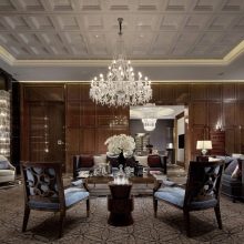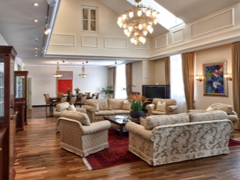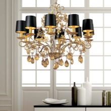 الثريات بأسلوب كلاسيكي عادةً ما يكون متعدد المسارات ، مع ظلال من القماش. هذه الهياكل المعلقة الضخمة مناسبة فقط للغرف ذات الحجم المثير للإعجاب ذات الأسقف العالية. إذا تقرر تعليق مصباحين من هذا القبيل ، فيجب اختيارهما متطابقين تمامًا ، لكن أحدهما أكبر قليلاً والآخر أصغر..