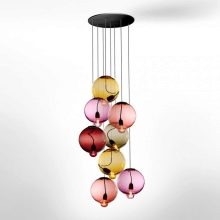 عند اختيار نموذج غير عادي فائق الحداثة ، فكر فيما إذا كنت ستظل معجبًا به عندما تنتهي الموضة الخاصة به. لا يمكن استخدام ثريا مثل هذه ، تشبه فقاعات الهواء ، في أي مكان آخر باستثناء غرفة المعيشة هذه ؛ لذلك ، يجب “تعديل” جميع الإصلاحات لتلائمها في كل مرة.