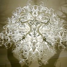 من الشائع استخدام الثريات ذات الرموز الطبيعية. تبدو الكرة غير عادية ، كما لو كانت مكونة من أغصان متشابكة ؛ قبل الشراء ، تحتاج إلى الإجابة بصدق على السؤال مقدمًا إذا كنت مستعدًا للعيش مع مثل هذه الإضاءة المخيفة طوال الوقت. يتم أيضًا استخدام تقليد سكان عالم الحيوان ، على سبيل المثال ، يمكن تغطية الإطار بالكامل بالفراشات أو تشبه الثريا الزجاجية نفسها في الشكل كرة منسوجة من الثعابين وقنديل البحر والأخطبوط.