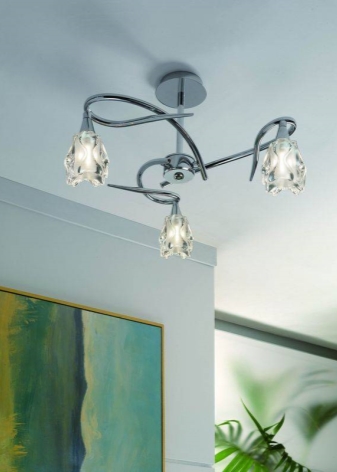 - ثريات مثبتة في السقف ليست بأي حال من الأحوال أدنى من تلك المعلقة في الخصائص الزخرفية. إنها تحتل ارتفاعًا أقل بشكل ملحوظ ، مما يجعلها خيارًا مناسبًا للغرف ذات الأسقف المنخفضة. هناك نماذج مسطحة ومتعرجة ، تكملها العديد من عناصر التصميم: المعلقات ، والإدخالات الزخرفية ، وأحجار الراين.