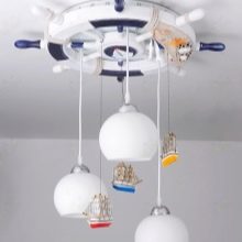 تُلزم ثريا عجلة القيادة بتجديد العناصر الأخرى للموضوع البحري.. يمكن أن تكون خرائط وشبكات ولوحات مصنوعة من قذائف ومجموعة مختارة من الأثاث المنمق وغير ذلك الكثير – كل إمكانات التصميم الخاصة بك في هذا الأمر مفيدة للغاية. بالإضافة إلى ذلك ، يمكنك اختيار نظام ألوان: من ظلال الباستيل الرقيقة من اللون الأزرق ، والأرجواني إلى القاتم ، ولكنها تمثل البني والبيج..