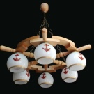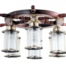 في دارشا ، لخلق الجو البحري الضروري ، سيكون من الأكثر نجاحًا غلق الجدران بالخشب ، ووضع كرسي هزاز ، وشبكات تعليق ، واختيار ثريا كلاسيكية. بالطبع ، في هذا السياق ، من خلال ثريا كلاسيكية على شكل عجلة القيادة ، فإننا نعني حافة خشبية بست درجات ومصابيح مدمجة للإضاءة. في مثل هذا التصميم الداخلي ، ستبدو ثريات السقف والجدران جميلة. غالبًا ما تكون ثريات السقف ذات الطراز البحري ثقيلة جدًا ، لذا يجب الانتباه في المنازل الريفية إلى موثوقية السحابات..