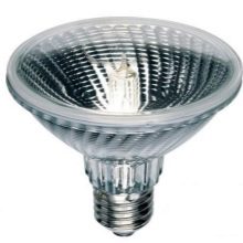 - مع عاكس. تنتج هذه المصابيح الكثير من الحرارة وتستخدم للإضاءة الموضعية (فهي مدمجة في أنواع مختلفة من الأسقف).