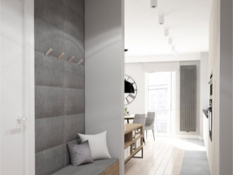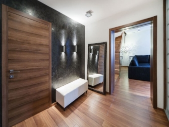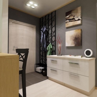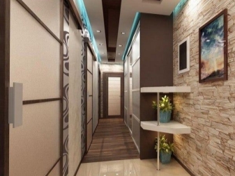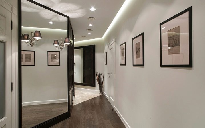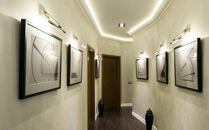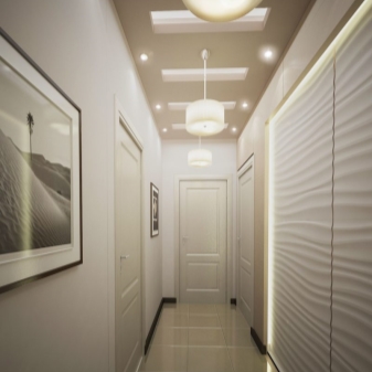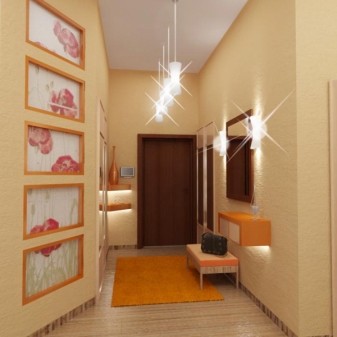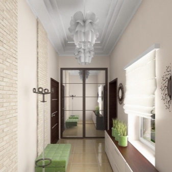 لا يساهم الممر المظلم في تكوين انطباع أول لطيف عن الشقة بأي شكل من الأشكال. لذلك ، تعد الإضاءة جزءًا ضروريًا من الرواق. نظرًا لعدم وجود نوافذ في هذا الجزء من الشقة ، من الضروري إنشاء المزيد من الإضاءة بمساعدة مصادرها الاصطناعية..