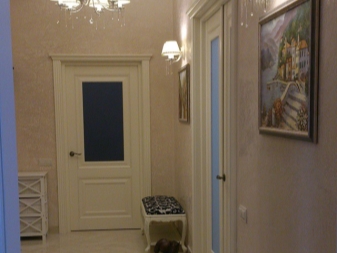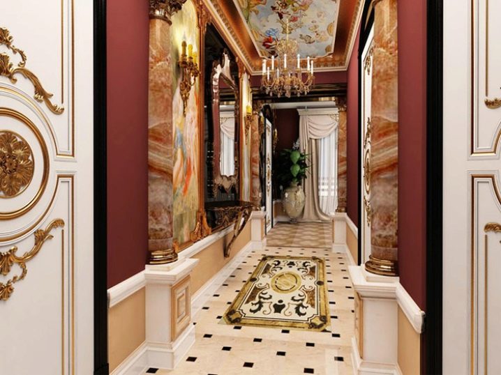 - لأسلوب الباروك الممرات صغيرة الحجم غير مقبولة ، لأن كل الطرافة والأناقة في الأسلوب تتطلب مساحة. على السقف ، مصباح معلق بلوري كبير أمر لا بد منه. في بعض الأحيان يمكن استكماله بمصابيح LED صغيرة على طول حواف السقف. يمكن لمصابيح الحائط تقليد الشموع والشمعدانات ، وزينت حواملها بالذهب أو البرونز.