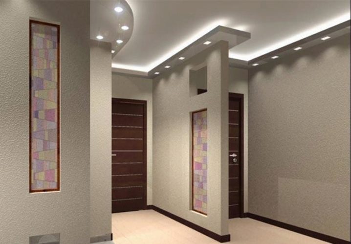 بالإضافة إلى المصباح الرئيسي ، يجوز تركيب مصابيح موضعية في السقف. سيخلقون تأثيرًا إضافيًا للضوء ويصبحون تفاصيل داخلية ضرورية إذا كان الرواق كبيرًا. يمكن استخدام هذه المصابيح كمصدر رئيسي للضوء إذا كان المدخل الخاص بك يحتوي على سقوف منخفضة.