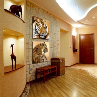 يمكنك وضع الأضواء في الردهة أينما تريد. يكفي إظهار خيالك ، وستحصل على مدخل مثالي بتصميم إضاءة أصلي..