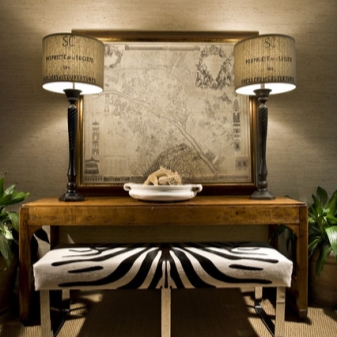 - المدخل على الطراز الأفريقي هو شغب الألوان والمطبوعات. في مثل هذا الممر ، دعنا نقول ضوءًا خافتًا قليلاً ، ظلل الظلال الرئيسية للتصميم – الأصفر والبني والأخضر والبيج. يمكن أن تكون ثريات السقف مربعة الشكل ، بينما يمكن تزيين الجدران بمصابيح مخروطية الشكل ، يتم توجيه ضوءها إلى الأعلى حصريًا. يمكن تزيين الردهة الأفريقية بإضاءة مثل المصباح الأرضي. سيصبح عاكس الضوء عنصرًا زخرفيًا مذهلاً ؛ وغالبًا ما يأخذ دورًا مميزًا في الداخل..