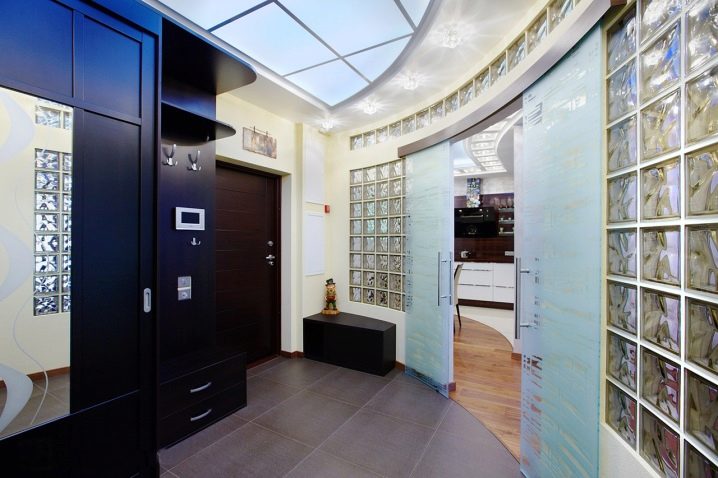 - لإنشاء إضاءة إضافية في الردهة ، استخدم الحواجز ذات الكتل الزجاجية. سيسمحون للضوء من الغرف المجاورة باختراق الممر وإنشاء إضاءة إضافية..