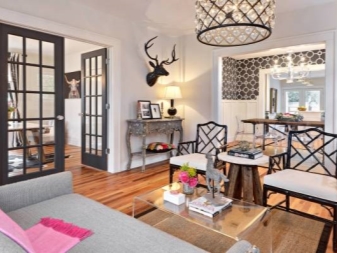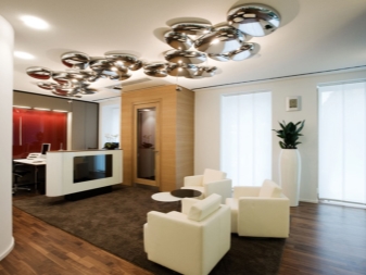 للقيام بذلك ، تحتاج إلى شراء عدة ثريات صغيرة الحجم ذات سطح مرآة أو كروم. بمساعدة هذه الأجهزة ، يمكنك زيادة المساحة أو تقليلها بصريًا ، أو تحديد المنطقة بأكملها أو منطقة معينة منها. مثل هذا النظام عالمي ويناسب كل نمط داخلي تقريبًا..