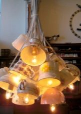 لمثل هذه الغرفة مناسبة لثريا مصنوعة من مواد الخردة. يتم إيلاء اهتمام خاص للون ، لذلك يجب اختيار المصابيح بلون أصفر أو أبيض دافئ قياسي. يجب ألا تحتوي الثريا على العديد من العناصر الزخرفية والألوان..