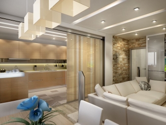 وظيفة خاصة للثريات الحديثة هي تقسيم الغرفة. الآن ، بفضل الإضاءة ، يمكنك إبراز التفاصيل التي تحتاجها وتحويل الانتباه عن المناطق غير المرغوب فيها.