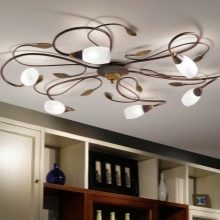 الشاليه هو أحد أصناف الطراز البيئي. يتميز أيضًا بالطبيعة والتصميم والأشكال غير العادية. سوف تتناسب ثريا السقف المصنوعة من الخشب أو الحديد المطاوع الكبير بشكل جيد مع هذا التصميم الداخلي. في الوقت نفسه ، لا ينصح باختيار الألوان الزاهية. من الأفضل التركيز على التصميم والشكل الأصليين (على سبيل المثال ، ثريا على شكل غصن شجرة).