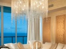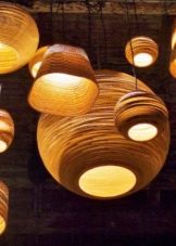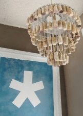 لمثل هذه الغرفة مناسبة لثريا مصنوعة من مواد الخردة. يتم إيلاء اهتمام خاص للون ، لذلك يجب اختيار المصابيح بلون أصفر أو أبيض دافئ قياسي. يجب ألا تحتوي الثريا على العديد من العناصر الزخرفية والألوان..