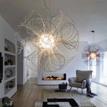 وظيفة خاصة للثريات الحديثة هي تقسيم الغرفة. الآن ، بفضل الإضاءة ، يمكنك إبراز التفاصيل التي تحتاجها وتحويل الانتباه عن المناطق غير المرغوب فيها.