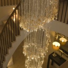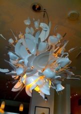 توجد بلورات صغيرة في نهاية الألياف. بفضلهم ، يكتسب المصباح مجموعة متنوعة من حلول الإضاءة. هذا التصميم يبدو مهيبًا ، لكنه رومانسي في نفس الوقت. اعتمادًا على حجم الغرفة ، يحاول الملاك اختيار حجم الجهاز حتى يتمكن من إضاءة جميع أجزاء الغرفة بالكامل. نظرًا لأن التقدم التقني لا يزال قائماً ، فقد صنع المصممون نظام إضاءة فريدًا – سحق تيارات الضوء.