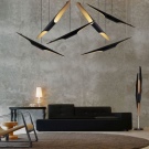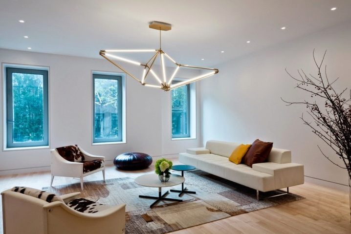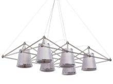 هذا النوع من التركيبات ، مثل العارضة ، يجعل من الممكن تعليق عدة ظلال في شكل تكوين معقد ، والذي لا يمكن الحصول عليه إذا كانت الثريا على خطاف. نموذج لغرفة المعيشة مصنوع من المعدن بظلال زجاجية له شكل يسمح لك بتغطية مساحة كبيرة بتدفق خفيف ، لأن 6 ظلال تناسب ثريا واحدة.