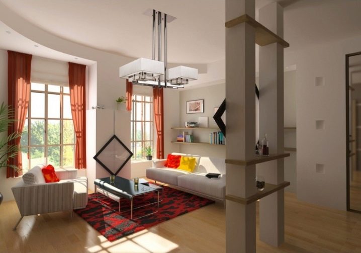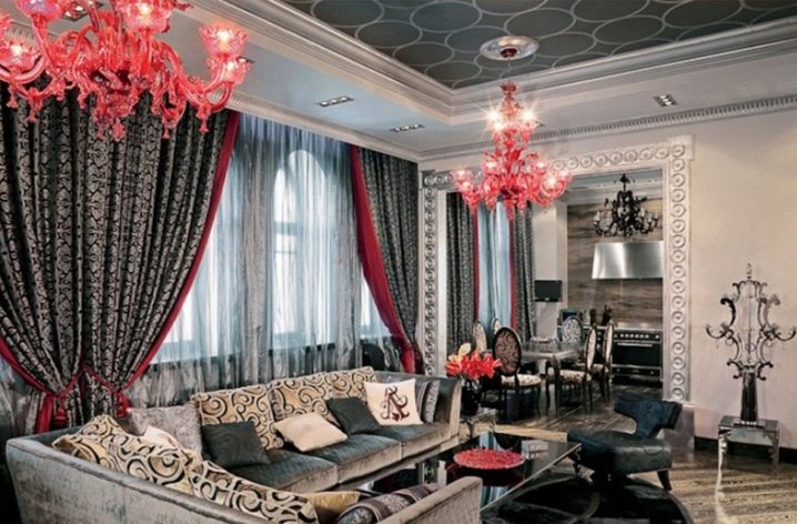 ستصبح الثريا الحمراء على خلفية المناطق الداخلية بألوان فاتحة لهجة رائعة ومربحة للغرفة. تذكر أن الثريات الساطعة يمكن أن تضيع في الداخل متعدد الألوان..