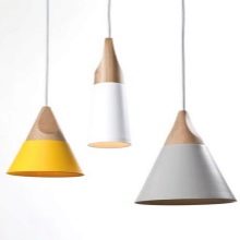 لا يصنع المصنعون أجهزة إضاءة من الخشب ، لأن المادة لا تلبي المتطلبات الأوروبية ، لأنها ليست مقاومة للحرارة. يتم تقديم نماذج مصنوعة من الخشب القديم على شكل عجلة أو فانوس أو على قضيب خشبي مع لمبات مدمجة من قبل حرفيين خاصين. يبدو أن هذا يمكن أن يكمل أسلوب البلد..