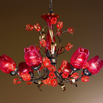 لا تستخدم الظلال الخزفية متعددة الألوان في إنتاج مصابيح المصمم. حتى الظلال البيضاء الدائرية عادية جدًا. حلول فنية رائعة على شكل أزهار مصنوعة من المعدن والزجاج. على سبيل المثال ، مصباح على طراز الأزهار. العناصر العصرية في السنوات الأخيرة هي مصابيح زجاجية ملونة على شكل كرة ، بيضاوية ، مخروطية ، اسطوانة. يرجى ملاحظة أن لون الظلال مطابق للون الثاني للداخل..