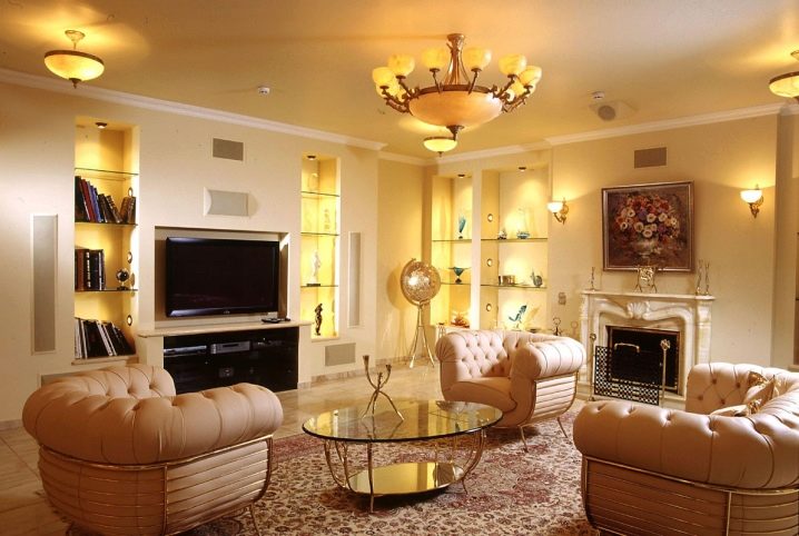 - سقف: مصابيح السقف تضيء المنطقة بأكملها. خذ نموذجًا مصممًا يشع ضوءًا ذهبيًا ناعمًا من Tom Dixon. بالطبع ، لا يمكن تعليق مثل هذه الثريا المصنوعة من المعدن المذهب إلا في وسط السقف..