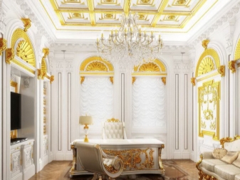 الثريا الكريستالية مناسبة للديكور الداخلي للمكتب بأسلوب كلاسيكي. بالنسبة للديكور الحديث ، فإن تركيبات ضوء النهار المستطيلة أو الدائرية المدمجة في الأسقف المعلقة مناسبة. يمكنك تنويع المقصورة الداخلية بمصابيح معلقة فوق الرف الجداري.
