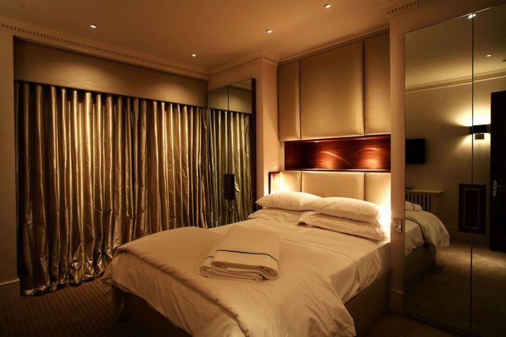 تقليديا ، يتم اختيار الشمعدانات الصغيرة على جانبي السرير لغرفة النوم. يمكن تزيين السقف بثريا أو مصابيح LED ذات انحراف ، أو يمكن أن يظل فارغًا.
