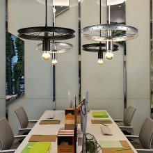 يمكن تركيب الشمعدان الأنيق الذي يناسب كل من الطراز العلوي والحديث فوق الطاولة. يسمح لك الظل المخروطي بتوزيع تدفق الضوء دون العمى.