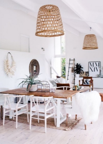 ستكون أغطية المصابيح المصنوعة يدويًا المصنوعة من الأغصان على الطراز الريفي مفيدة لتزيين غرفة الطعام في منزل ريفي.