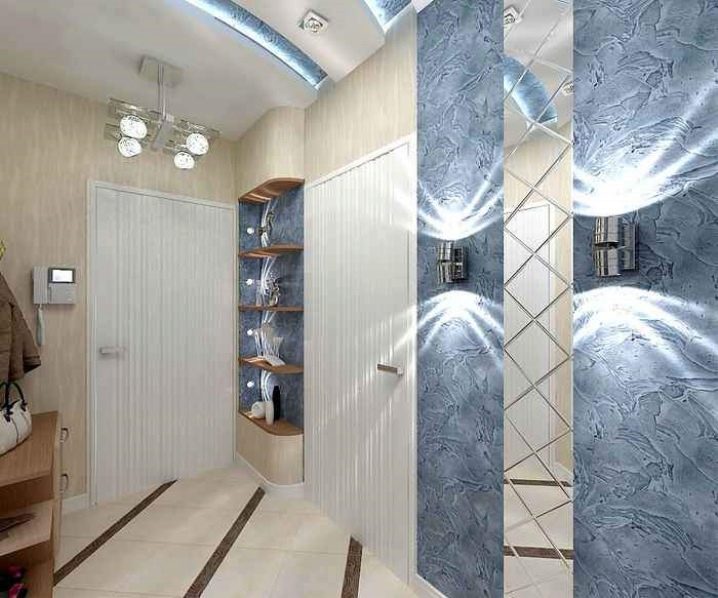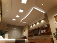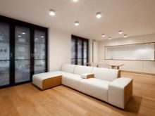 إذا كنت ترغب في ذلك ، يمكنك بسهولة العثور على نموذج إنارة مناسب, والتي سيكون لها الحجم والشكل المطلوب. تذكر عدم تثبيت مصابيح موضعية كبيرة جدًا. سيكون من الأصح وضع مجموعة من المصابيح ، أو اختيار ثريا سقف مستوية لاستبدالها..