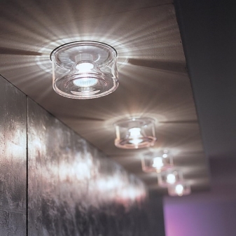 جميع الأضواء لها نفس الهيكل. يتم إرفاقها بقوس خاص. يتم تثبيت الدعامة على السقف ، ويتم تركيب جسم المصباح المكون من قطعة واحدة مباشرة فيه. إذا قمت بتفكيك هيكل المصباح نفسه ، فإنه يتكون من خرطوشة وزجاج واقي أو مسطح (حسب الطراز). هناك أيضًا تلك التي يتم تصنيعها فقط على شكل خرطوشة ، ويتم شراء المصابيح لها ، مما يعني وجود زجاج واقي.
