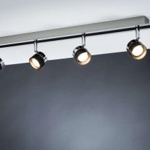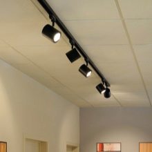 عند الحديث عن الأضواء الكاشفة العلوية ، لا يسع المرء إلا أن يذكر النماذج الموجودة على القضيب. إنها تشبه الشمعدانات العادية ، لكنها تتمتع بإخراج إضاءة أعلى بكثير ، مما يسمح لك بإعادة توجيه الضوء حسب الحاجة. على سبيل المثال ، تعتبر الأضواء الكاشفة على قضيب مثالية كمصباح بجانب السرير للقراءة أو عنصر تعبيري على لوحة أو صورة مهمة..