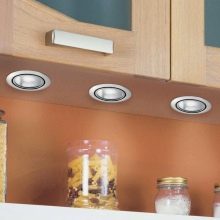 كما أنها تبدو جيدة في الأثاث ، عندما تحتاج إلى القيام بشيء ما بالإضاءة. على سبيل المثال ، الخيار الأكثر شيوعًا هو تثبيت المصابيح على طول الجزء العلوي من الخزانة بحيث تكون محتوياتها مرئية بشكل أفضل..