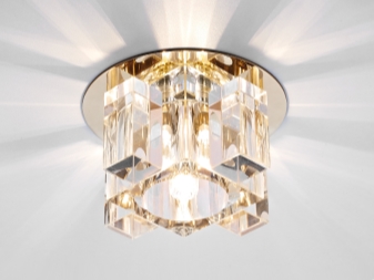 تعتبر النماذج العلوية ، التي يمكن تصنيعها من مواد غير عادية ، ذات أهمية خاصة. هناك نماذج من الكريستال وحتى الجص. إذا كانت المصابيح ذات الكريستال متجذرة إلى حد ما ، فإن خيارات الجبس نادرًا ما تستخدم بسبب حقيقة أن الجبس مادة غير عملية للغاية..
