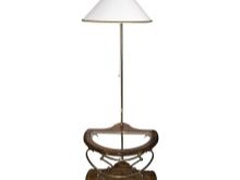سوف يتناسب هذا المصباح تمامًا مع كرسي بذراعين أو أريكة وسيقوم بعمل طاولة قهوة صغيرة. مصباح أرضي بطاولة بالقرب من السرير سيحل محل سطح طاولة السرير.