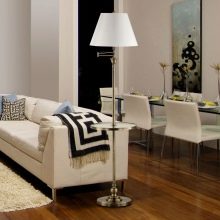 لإضافة مزيد من الراحة إلى الغرفة عن طريق إضافة ضوء ناعم إليها ، مصباح أرضي طويل – مصباح أرضي سيساعدك. إن تركيبات الإضاءة هذه ، التي تقود تاريخها من الأوعية الطويلة القديمة بالزيت المحترق على حامل ثلاثي القوائم ، تتخذ اليوم أشكالًا متنوعة (غريبة في بعض الأحيان) ويمكن أن تصبح لهجة زخرفية مشرقة للغرفة. اليوم ، يختار العديد من المستهلكين مصابيح أرضية مع طاولة..