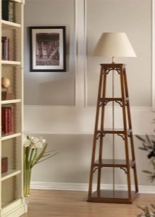 في أغلب الأحيان ، يتم استخدام الخشب في قاعدة مصباح أرضي مع طاولة: تعتبر النماذج المطلية عمليًا شيئًا من الماضي ، واليوم تتم معالجة الخشب بشموع مختلفة ، مما يؤكد التأثير الزخرفي الكامل للنسيج ، ويحتفظ بمظهره الأصلي لسنوات عديدة. سوف يتناسب هذا المصباح بسهولة مع المساحة الداخلية الحالية ، ما عليك سوى اختيار لون الخشب ليتناسب مع اللون الذي صنع منه أثاثك..