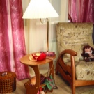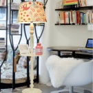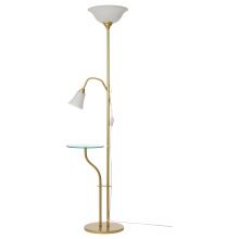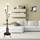 سوف يتناسب هذا المصباح تمامًا مع كرسي بذراعين أو أريكة وسيقوم بعمل طاولة قهوة صغيرة. مصباح أرضي بطاولة بالقرب من السرير سيحل محل سطح طاولة السرير.
