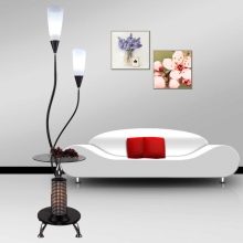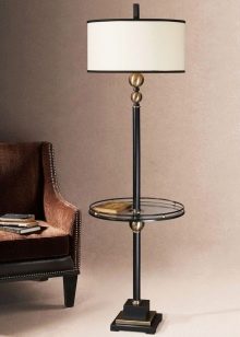 لإضافة مزيد من الراحة إلى الغرفة عن طريق إضافة ضوء ناعم إليها ، مصباح أرضي طويل – مصباح أرضي سيساعدك. إن تركيبات الإضاءة هذه ، التي تقود تاريخها من الأوعية الطويلة القديمة بالزيت المحترق على حامل ثلاثي القوائم ، تتخذ اليوم أشكالًا متنوعة (غريبة في بعض الأحيان) ويمكن أن تصبح لهجة زخرفية مشرقة للغرفة. اليوم ، يختار العديد من المستهلكين مصابيح أرضية مع طاولة..