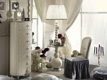 - رف مصباح أرضي أبيض حليبي – عنصر مثير للاهتمام في غرفة النوم المريحة أو غرفة المعيشة بأسلوب بروفانس.