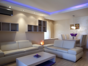 يمكن للمصابيح المرتبة على شكل شكل هندسي جميل في غرفة الأطفال أن تخلق جوًا من قصة خيالية حقيقية. في غرفة المعيشة ، ستبدو مصابيح الهالوجين الكاشفة مع الثريا الرئيسية رائعة. يمكنك توسيع مساحة الممر بصريًا من خلال إضاءة الجدران بضوء نقطة اتجاهي صامت في الردهة ، وبالتالي تعتيم السقف. تبدو الأضواء في الحمام رائعة للغاية. سيكون الضوء الناعم غير الساطع من 3-4 مصابيح كافياً لإضاءة حمام صغير.